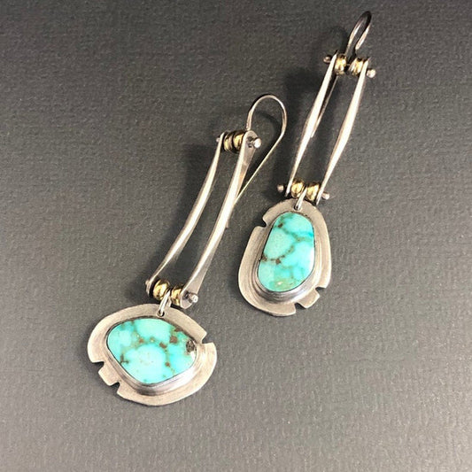 Asymmetric Turquoise Natural Gemstone Long Color Separation Earrings For Women