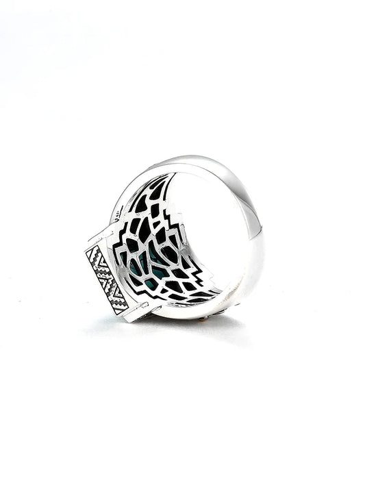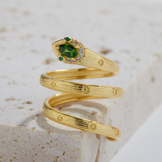 925 Silver Inlaid Natural Diopside Gemstone Snake Ring