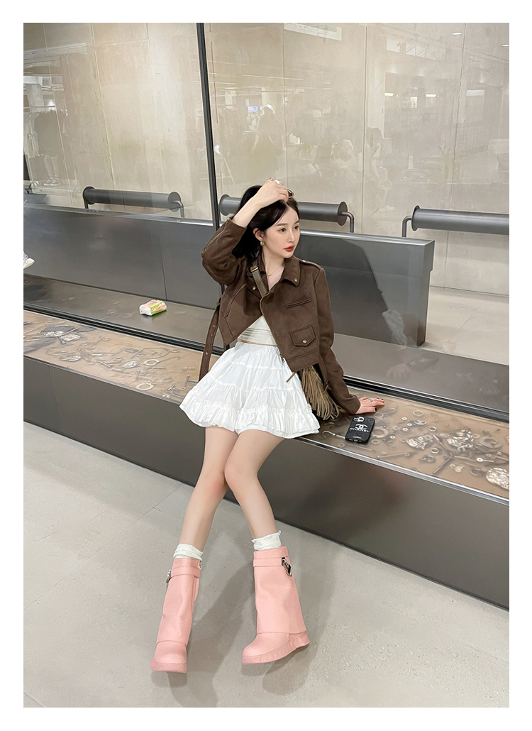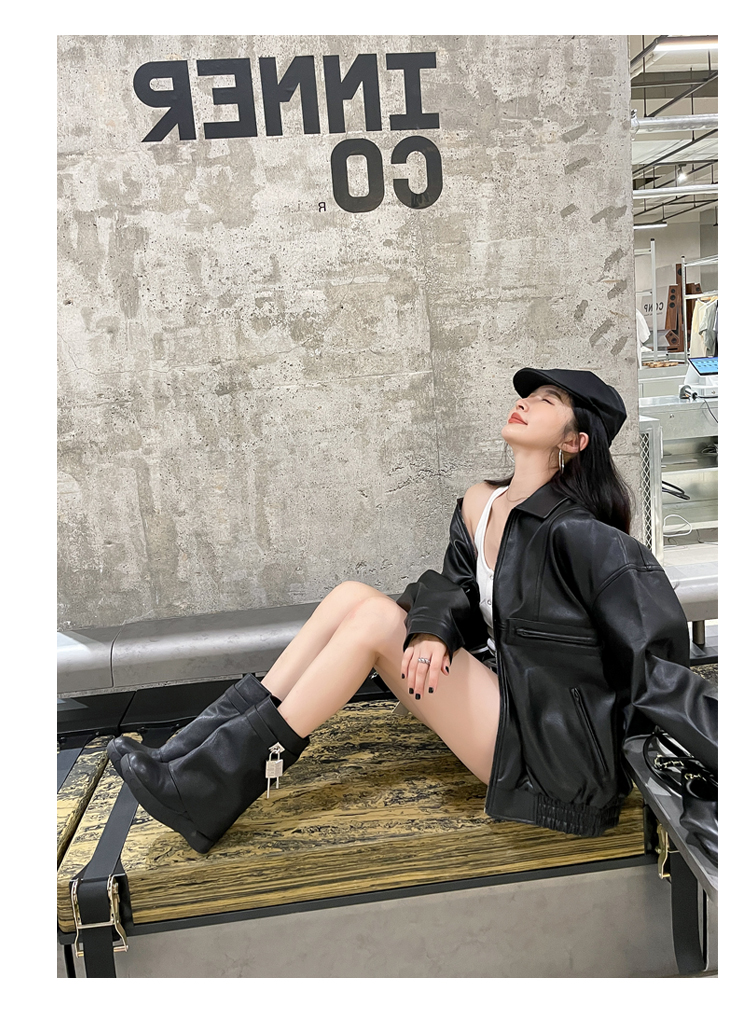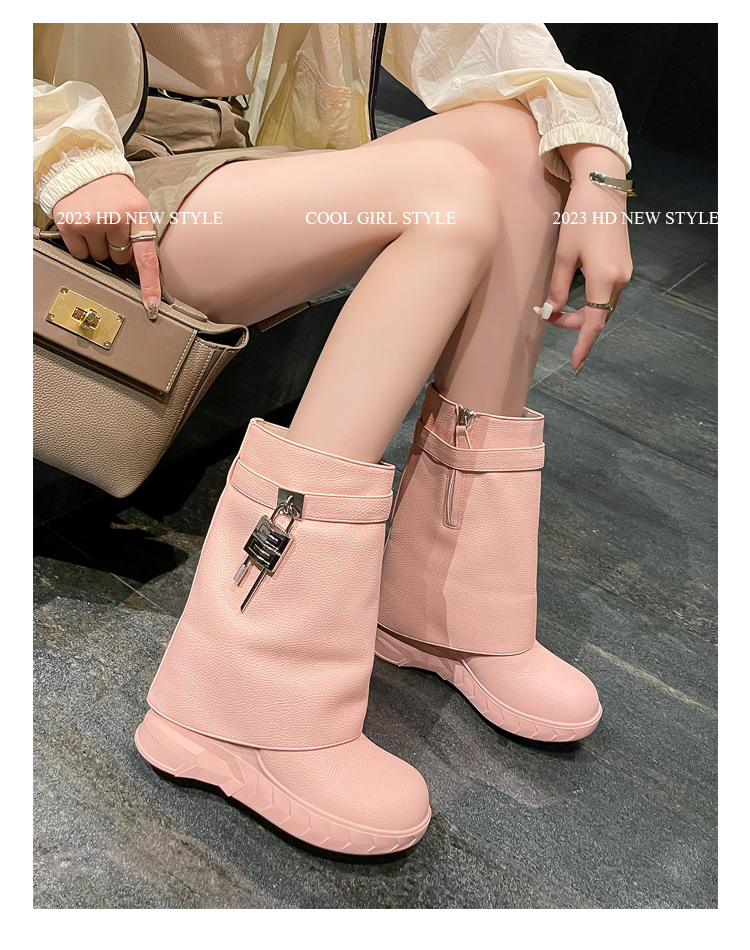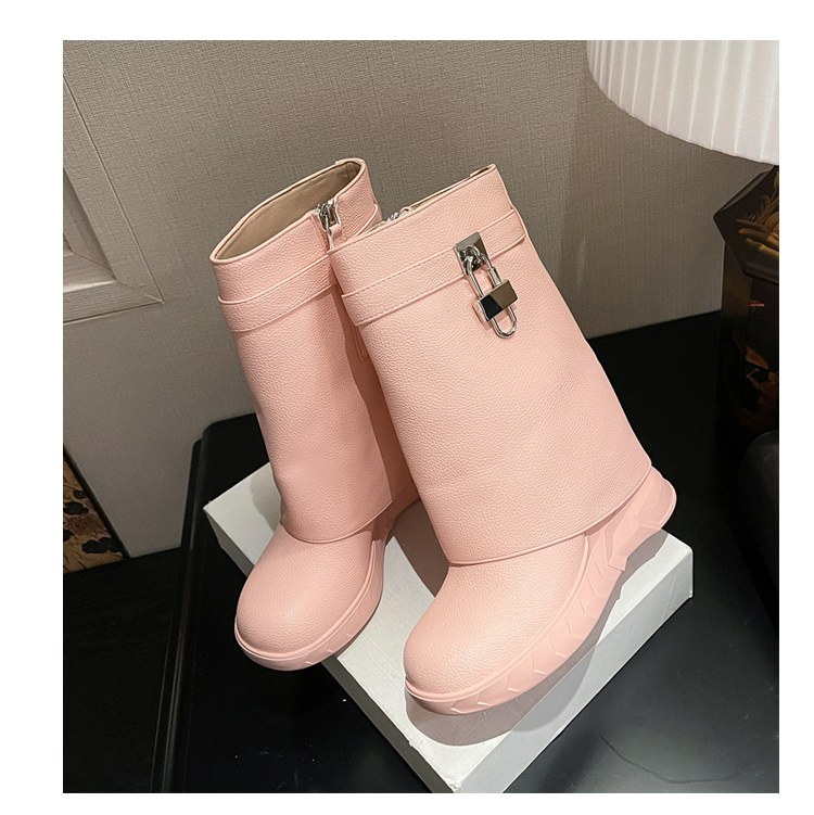 Platform Shoes Thick Sole Height Increasing Metal Lock Catch Boots